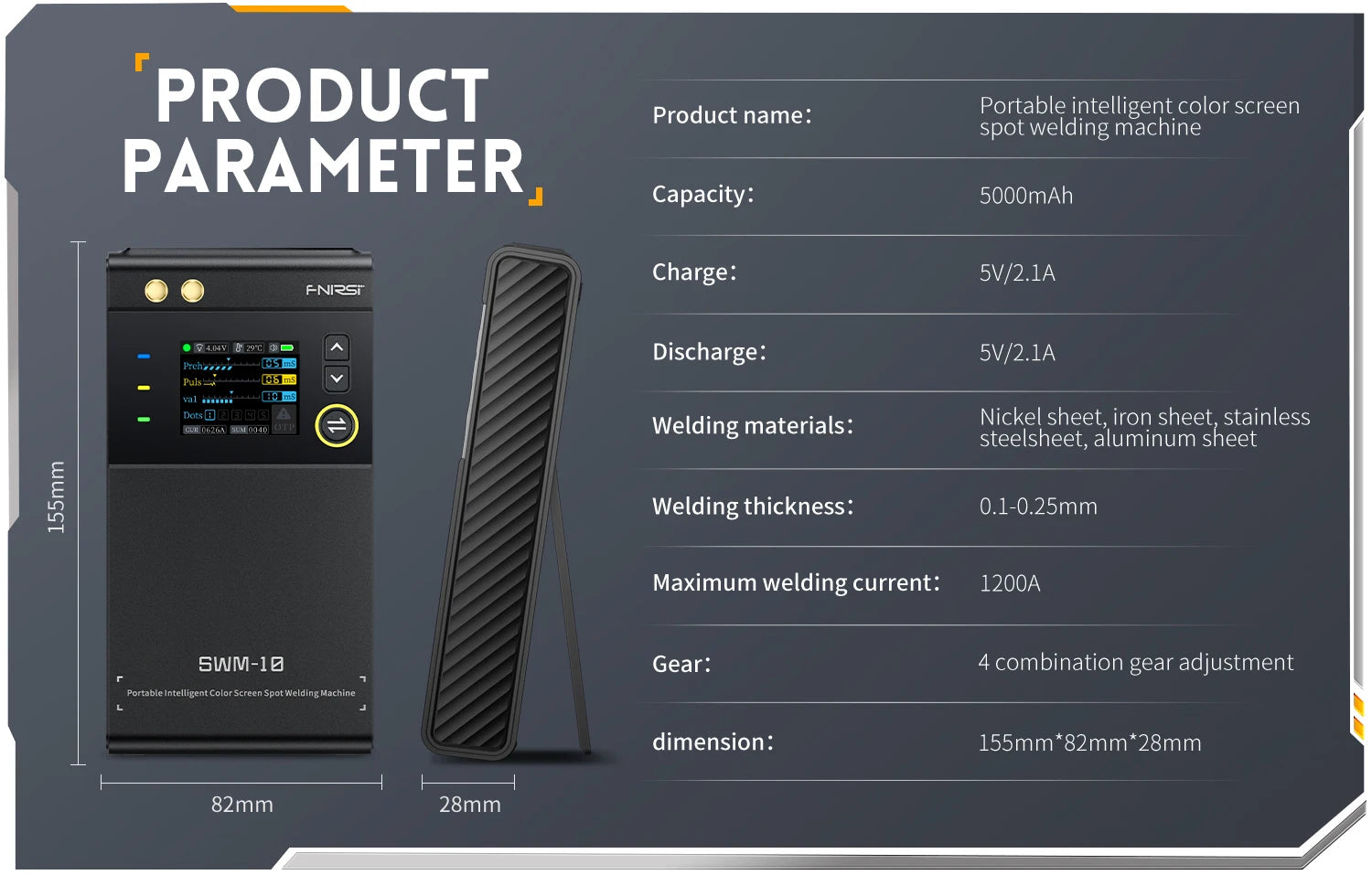 FNIRSI SWM-10 เครื่องเชื่อมจุดไฟแบตเตอรี่แบบพกพา